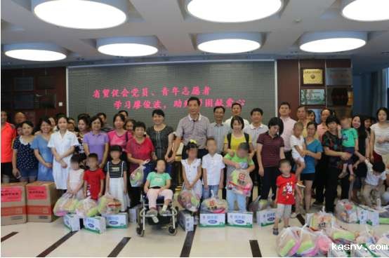 党组书记、会长陈震率机关党团员与特教老师和残疾儿童合影