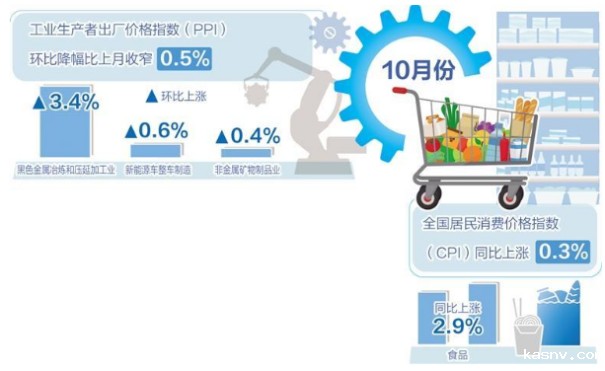 国家统计局数据显示,10月份,消费市场运行总体平稳,食品价格高位回落,叠加汽油价格下行,全国居民消费价格指数(CPI)环比下降0.3%,同比上涨0.3%。扣除食品和能源价格的核心CPI略有回升,同比上涨0.2%,涨幅比上月扩大0.1个百分点。