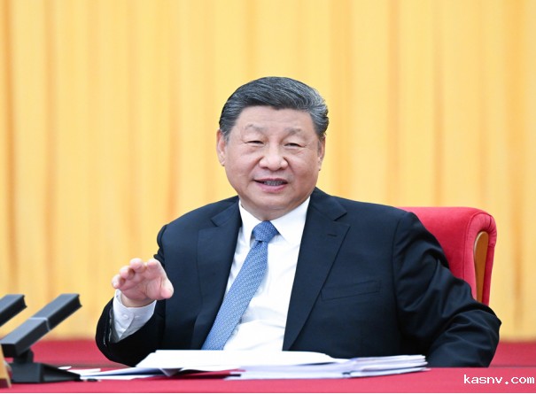 3月6日下午,中共中央总书记、国家主席、中央军委主席习近平看望参加全国政协十四届三次会议的民盟、民进、教育界委员,并参加联组会,听取意见和建议。中共中央政治局常委、全国政协主席王沪宁,中共中央政治局常委、中央办公厅主任蔡奇参加看望和讨论。 新华社记者 丁林 摄