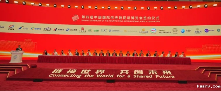 7月20日上午,第四届中国国际供应链促进博览会参展签约仪式在中国国际展览中心顺义馆举行。中国贸促会副会长于健龙、李兴乾出席。霍尼韦尔、GE医疗、西门子、康宁公司、住友电工、华润集团、中兴通讯、阿里巴巴、赛力斯、稳健医疗等102家中外企业和机构与链博会承办单位中国国际展览中心集团有限公司现场签署第四届链博会参展意向。